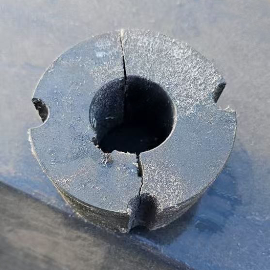 Традиционно такие втулки изготавливают из чугуна - это дешёвое и привычное решение. Но у чугуна есть критический недостаток: он хрупкий. Особенно это проявляется в самых нагруженных и тонких местах втулки. В отличие от стали, чугун практически не деформируется - он просто трескается.