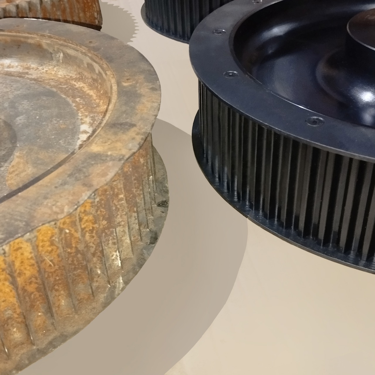 Единственным материальным свидетельством того, как выглядели исправные детали, оказались два шкива, снятых с оборудования. Их состояние можно было описать одной фразой: полная выработка ресурса. Профиль зубьев оказался практически разрушен, геометрия венца нарушена, посадочные поверхности имели следы коррозии и механических повреждений. Железо, как сказали бы на заводе, «проржавело насквозь».
