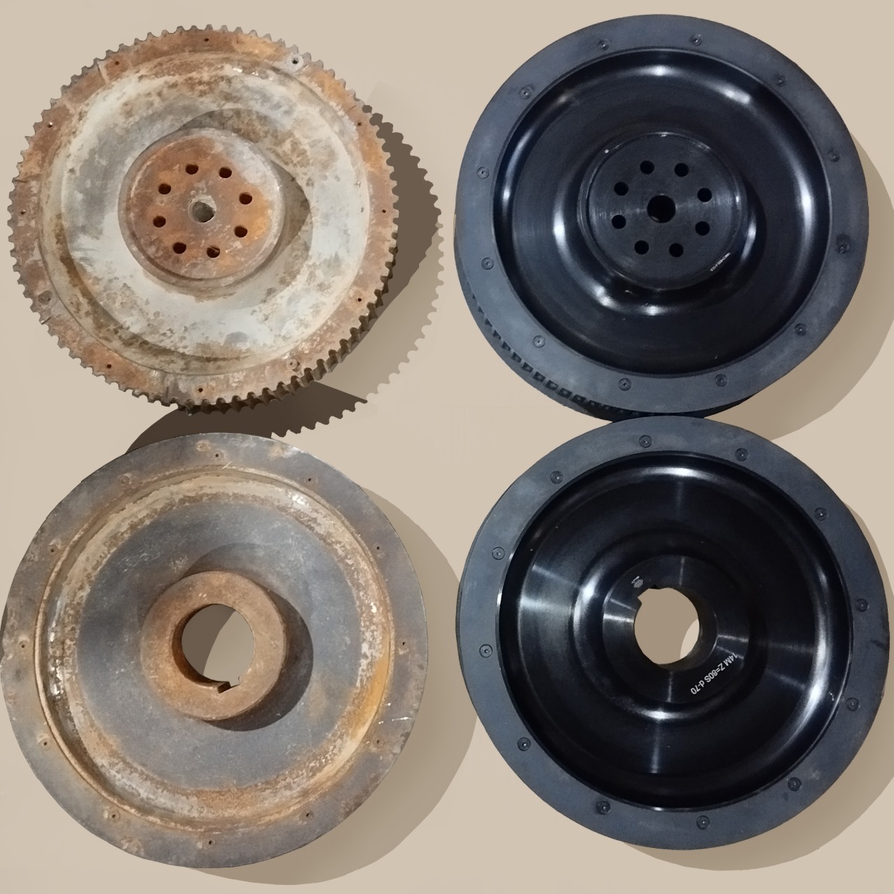 Результатом работы стали два шкива под ремень Synchrochain с шагом 14M (серия 14M 80S), шириной венца 79 мм, но с разной конструкцией крепления, адаптированной под конкретные узлы привода.